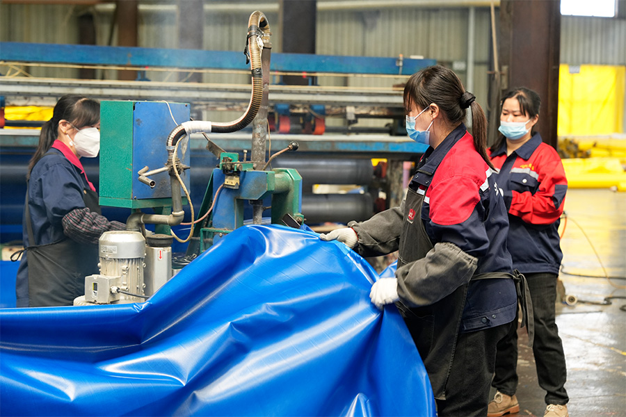 江苏苏龙环保科技有限公司(简称“苏龙环保”)成立于2007年,坐落于江苏省阜宁滤料产业园区,注册资本1.08亿元,占地50亩,建筑面积3万平方米。公司主要产品涵盖PVC、PE高分子气密布、涂覆布、防水卷材及制品,泥浆与化学灌浆器材,以及矿用和隧道通风系统等。
